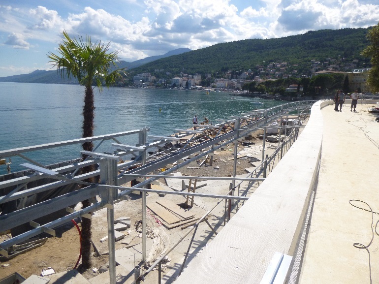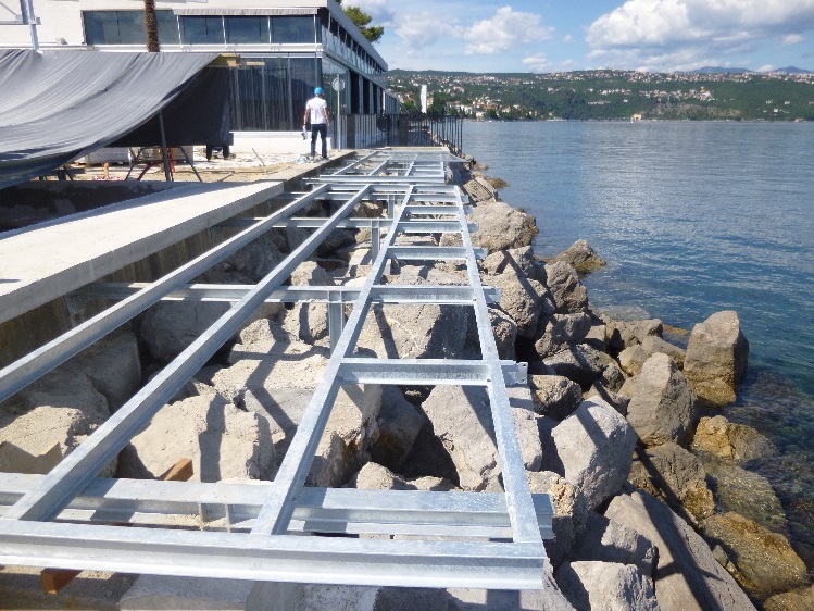 Projekt: Lido StrandOpatija, CroatiaInvestor: Bevanda Lido d.o.o.Corrosion protection: Hot-dip galvanizedECON: Workshop Drawings + production + assembly