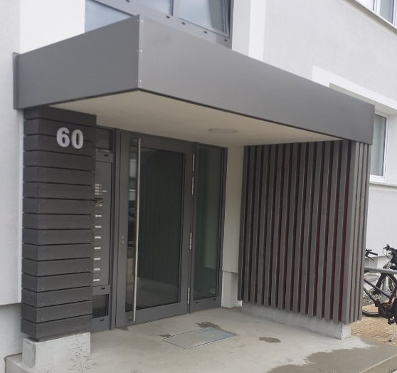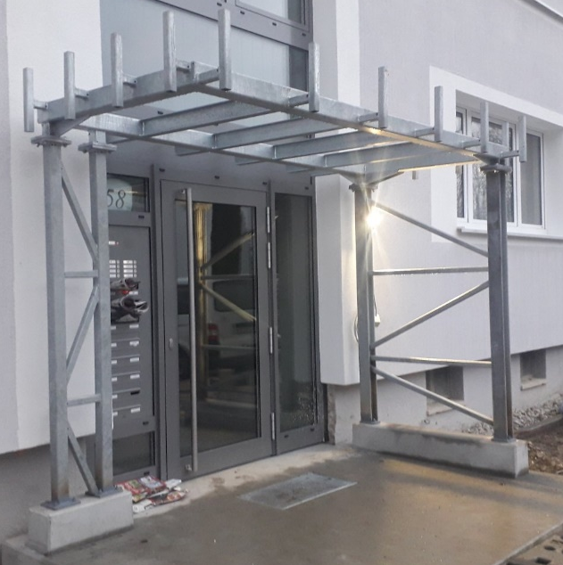 Projekt: Vordächer GermanyClient: B&O Gruppe | B&O Bau Bayern GmbHCorrosion protection: Hot-dip galvanizedECON: Workshop Drawings + production + assembly