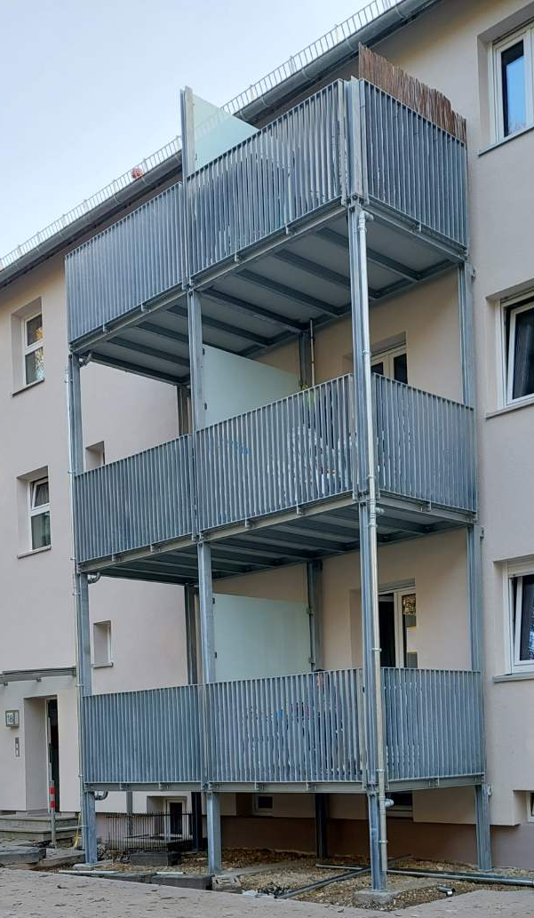 Projekt: Balconies Augsburg DeutschlandClient: B&O Gruppe | B&O Bau Bayern GmbHCorrosion protection: Hot-dip galvanizedECON: Workshop Drawings + production + assembly